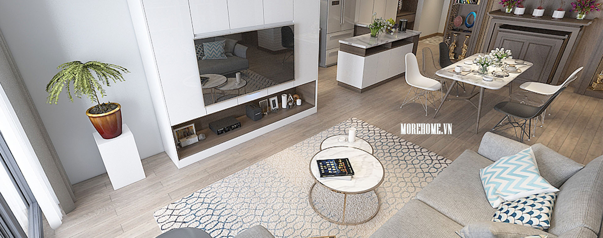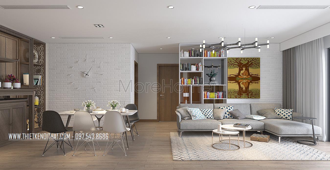 Có thể thấy được rằng với sự sáng tạo độc đáo của mình mà kiến trúc sư Morehome đã mang lại cho gia chủ một không gian sống vô cùng tiện nghi, hiện đại mà vô cùng đẳng cấp. Khách hàng nào có nhu cầu thiết kế nội thất chung cư giống như mẫu chung cư trên hãy liên hệ với chúng tôi theo hotline 0975438686 để được tư vấn cụ thể hơn.