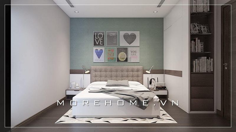 Thiết kế nội thất giường ngủ hiện đại, gam màu nhã nhặn, tinh tế được gia chủ lựa chọn mang đến cho gia chủ cảm giác thoải mái và nhẹ nhàng hơn