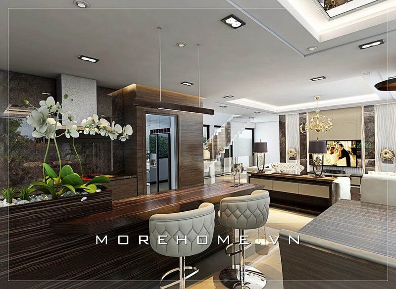 Thiết kế nội thất phòng bếp rộng theo phong cách hiện đại cho nhà biệt thự