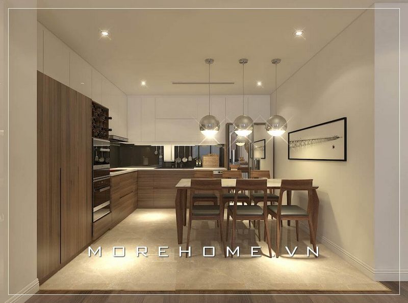 Thiết kế nội thất phòng bếp chung cư hiện đại, đơn giản và tiện nghi